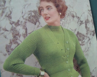 Vintage 1950s Knitting Pattern Women S Twin Set Cardigan Etsy